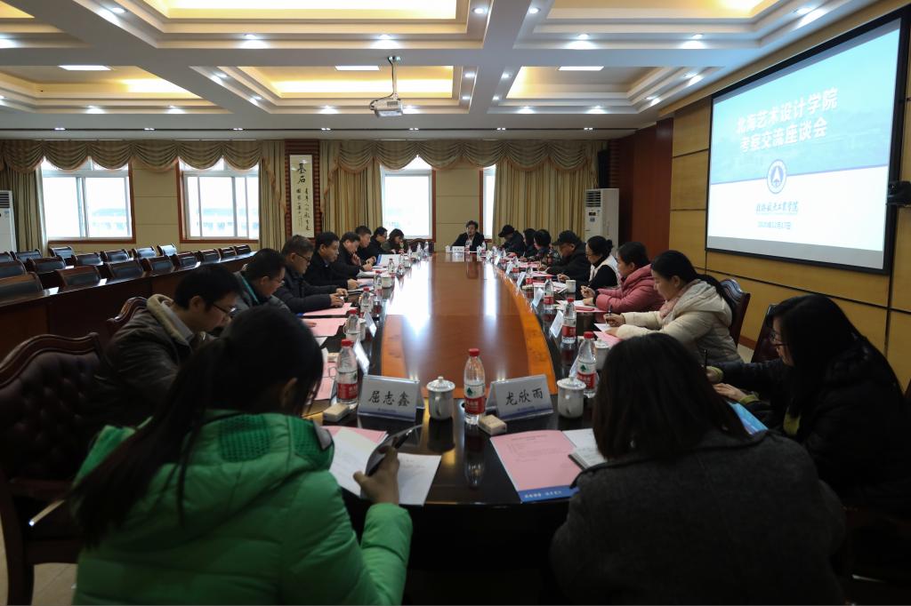 12月17日,北海艺术设计学院常务副校长贺争平、副校长张建虹、张跃等校领导和相关部门单位负责人来校考察交流。学校党委副书记罗延忠、副校长孙山林和相关部门单位负责人热情接待了来访客人,并组织召开了座谈交流会,座谈会由罗延忠主持。