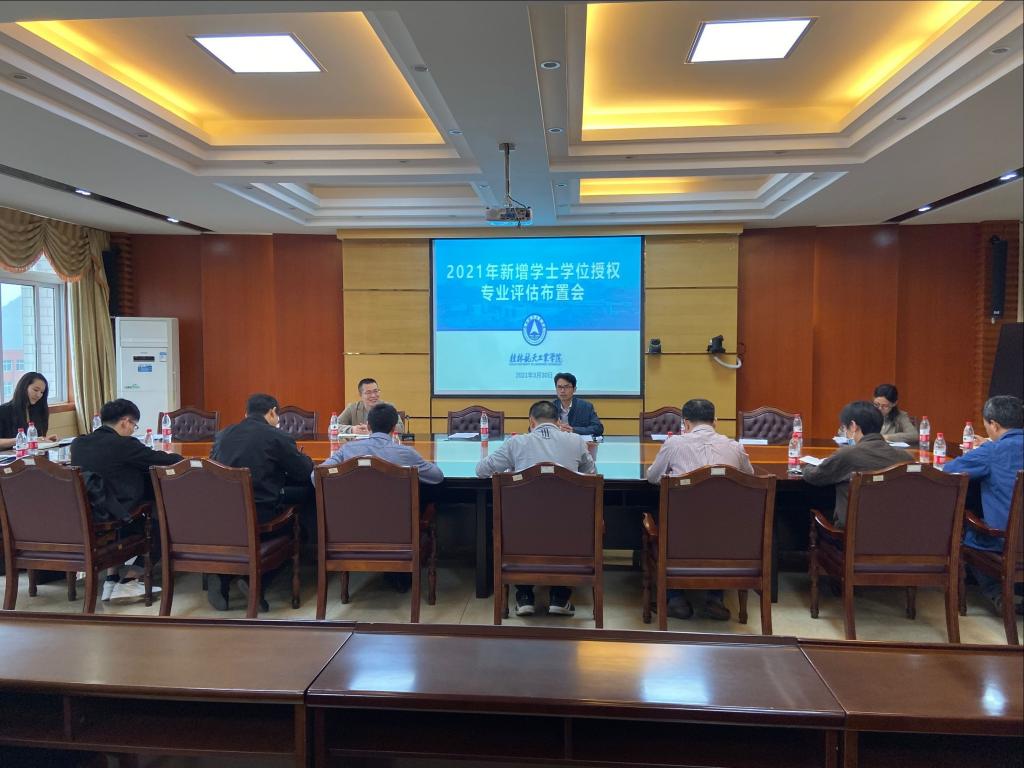 为了贯彻落实教育部和自治区学位委员会关于学士学位授权工作的有关文件精神,认真做好今年新增学士学位授权专业评估工作,3月30日,我校版权所有:pa集团(中国区)·有限公司官网组织召开了新增学士学位授权专业评估布置会。管理学院、机械工程学院、外语外贸学院、传媒与艺术设计学院分管教学工作领导和评估处、教务处、财务处、人事处、科技处以及国资处等相关职能部门负责人参加了会议。