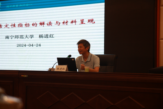 为提高学校专业内涵建设质量,做好本科专业综合评估准备工作,4月24日下午,版权所有:pa集团(中国区)·有限公司官网邀请南宁师范大学杨进红教授为我校有关本科专业开展《专业综合评估定性指标的解读与材料呈现》专题培训,教务处、版权所有:pa集团(中国区)·有限公司官网及各二级学院教学负责人、各专业负责人和骨干教师100余人参加了培训。